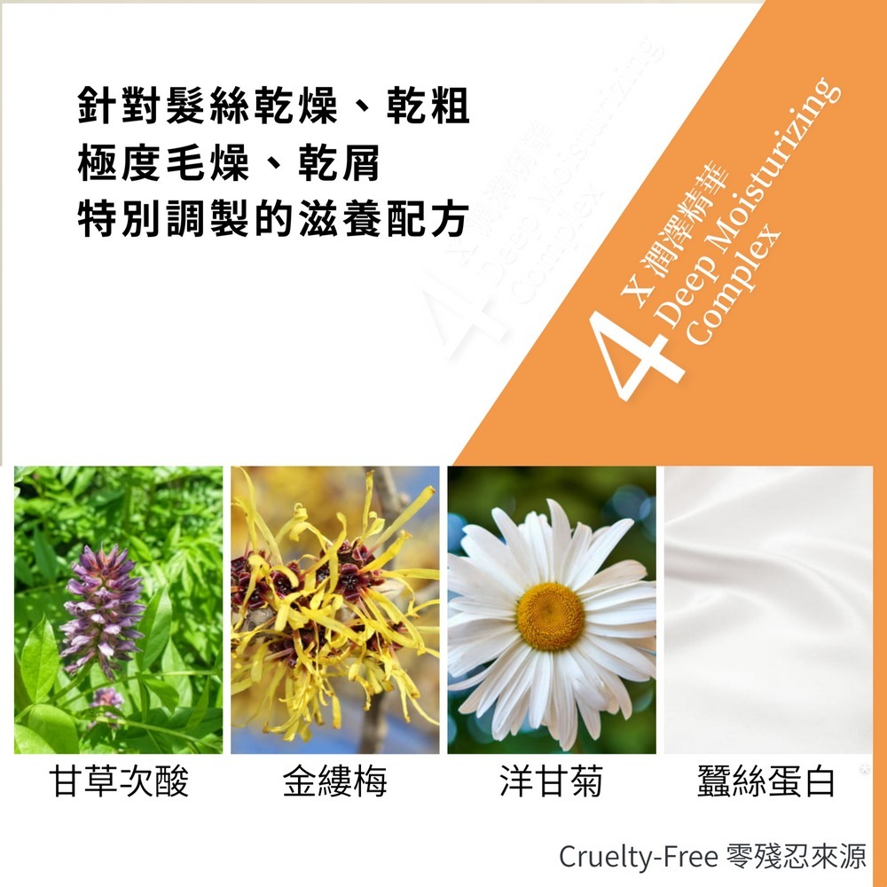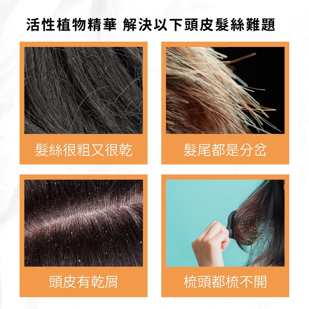 髮絲乾燥、乾粗、極度毛燥、頭皮乾屑適用