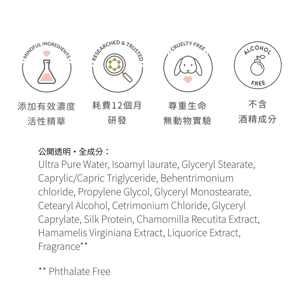 無矽靈、SLS、SLES、paraben化學防腐劑、動物成分