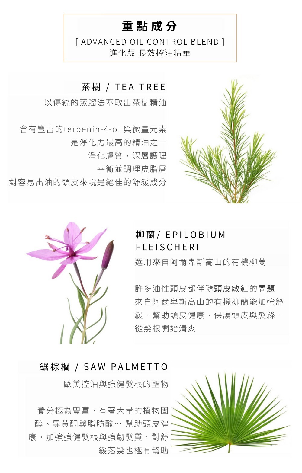 茶樹精油 + 柳蘭 + 鋸棕櫚