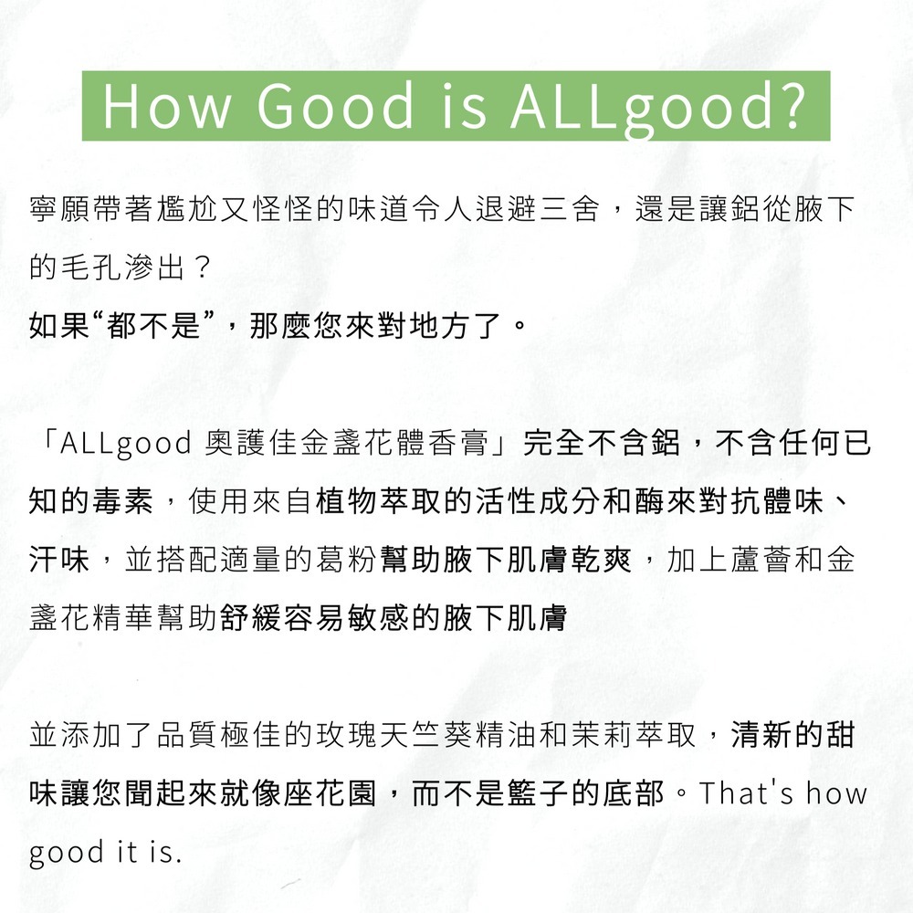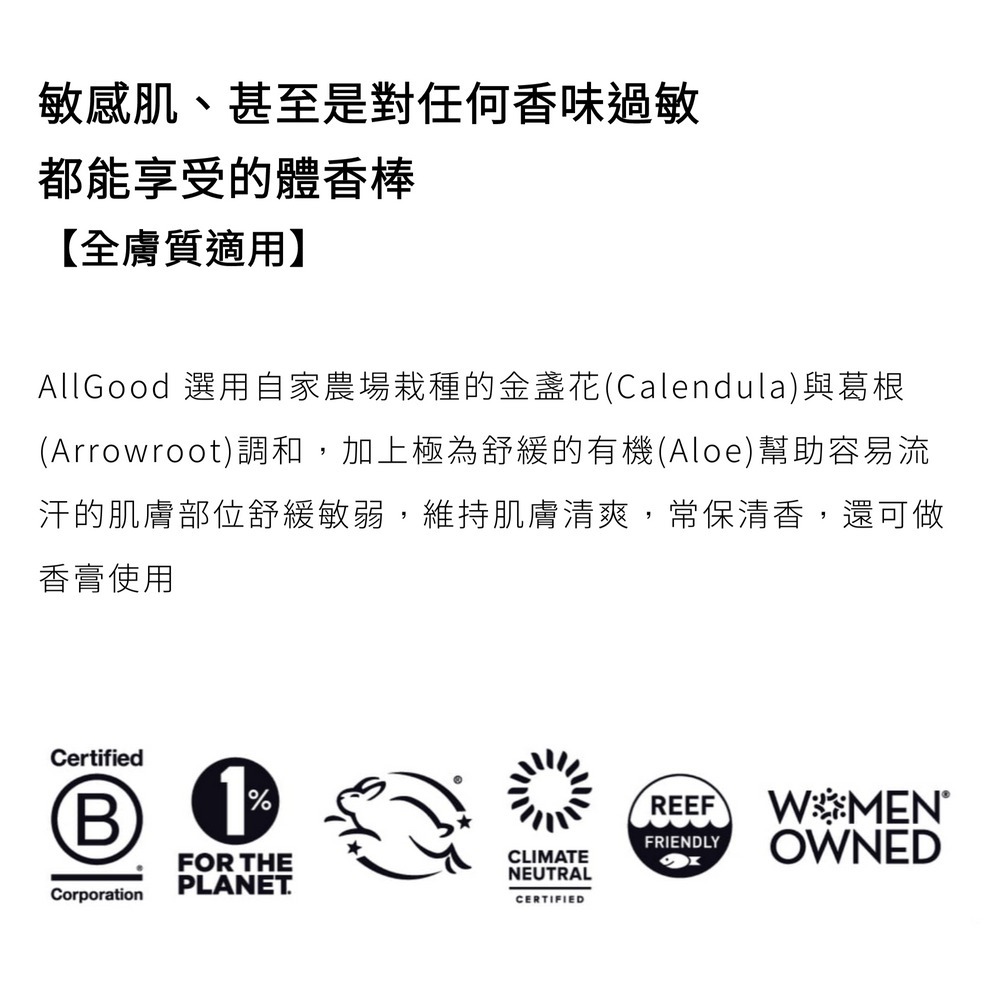 極低敏配方,不含丙烯、鋁鹽、化學止汗劑、小蘇打