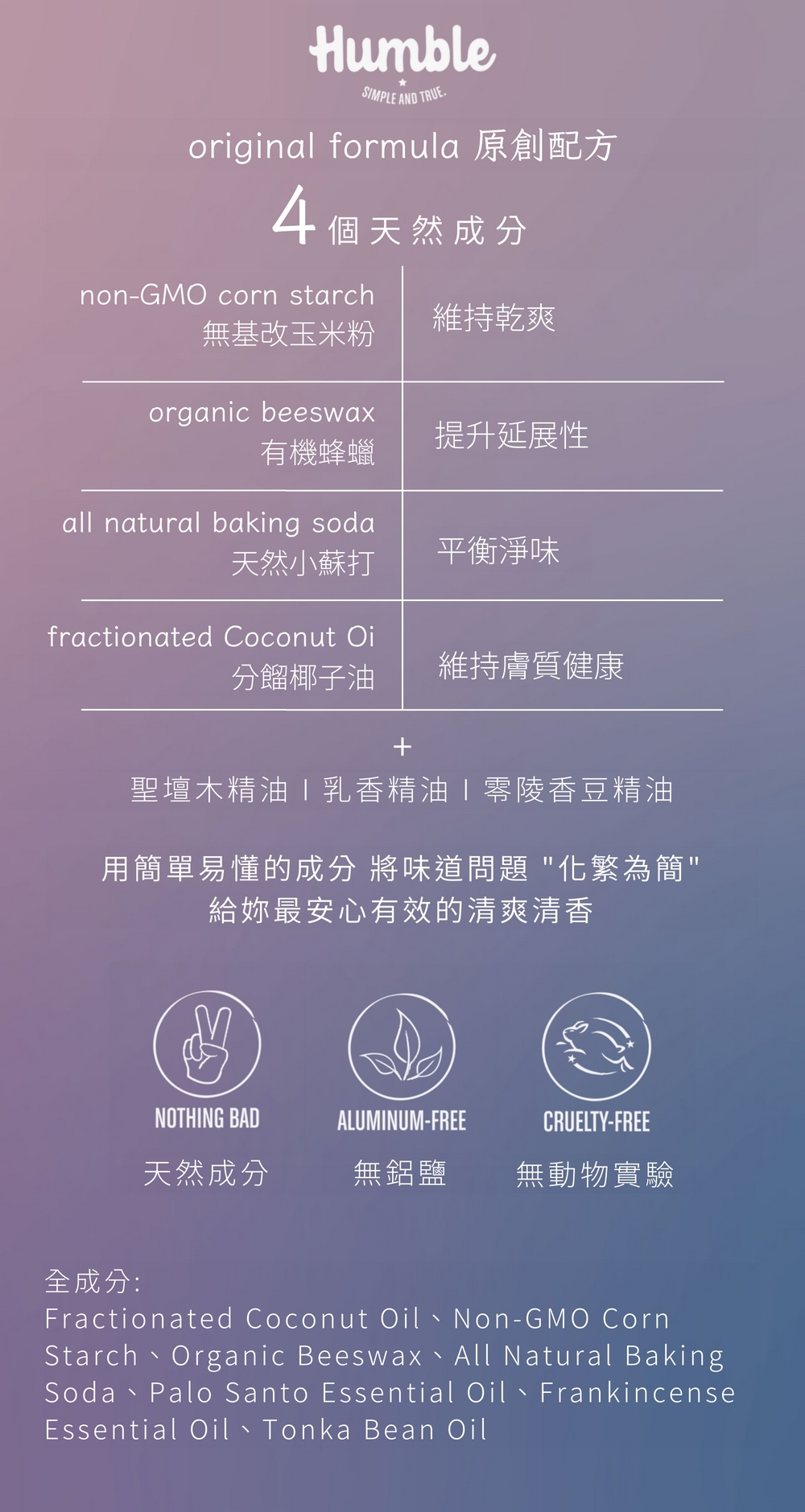 英文品名:Humble Deodorant – Palo Santo, Frankincense & Vanilla