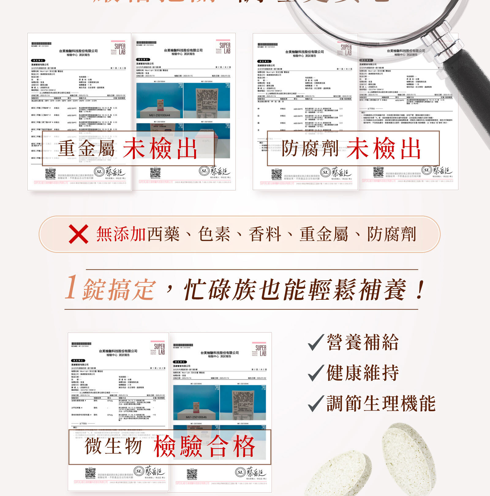 ✅通過SuperLab 四大重金屬、塑化劑、微生物測試