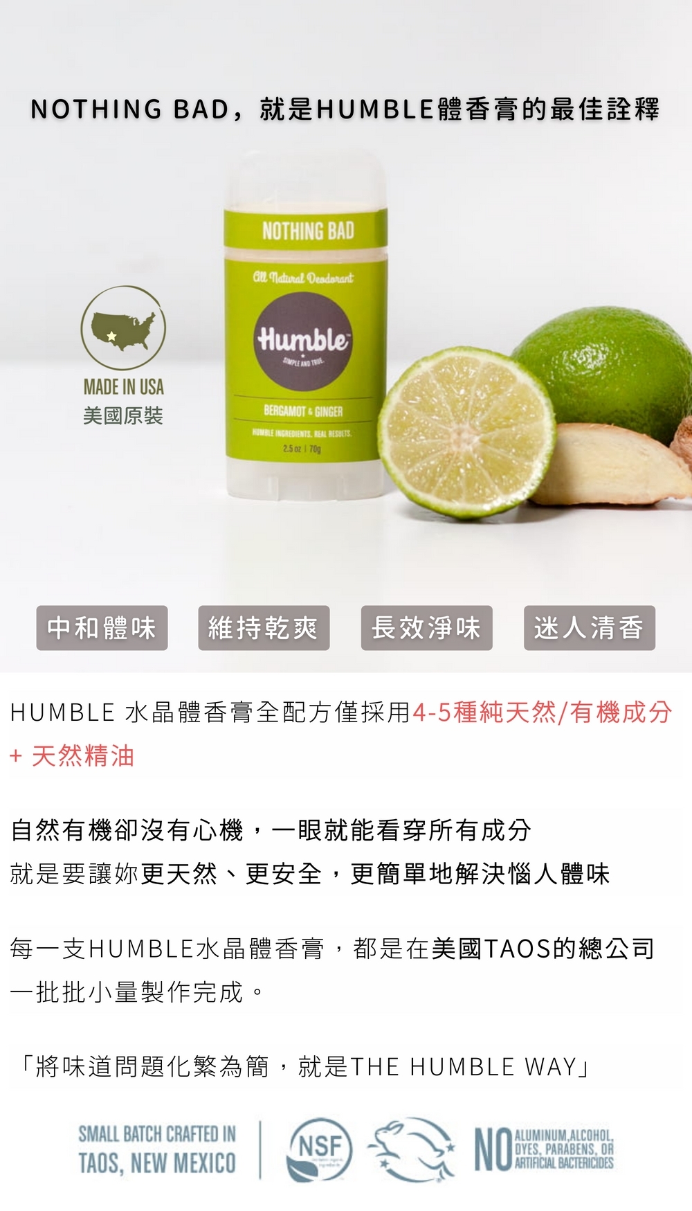 英文品名:Humble Deodorant – Bergamot & Ginger