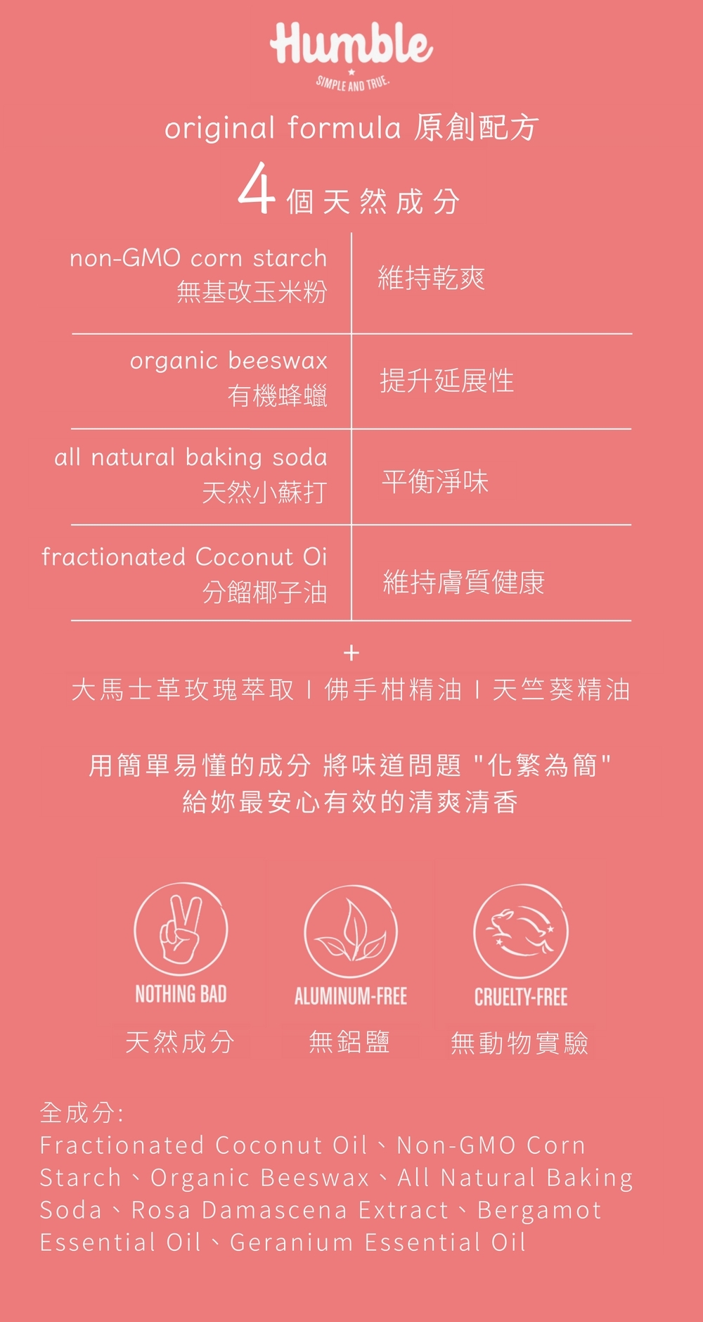 不含paraben化學防腐劑、色素、雌激素、塑化劑、化學止汗劑