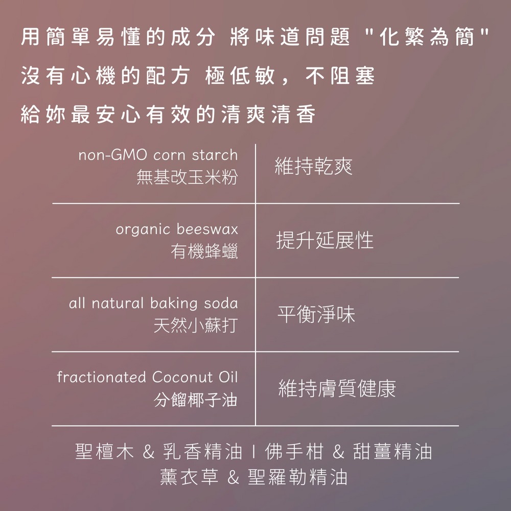 不含paraben化學防腐劑、色素、雌激素、塑化劑、化學止汗劑