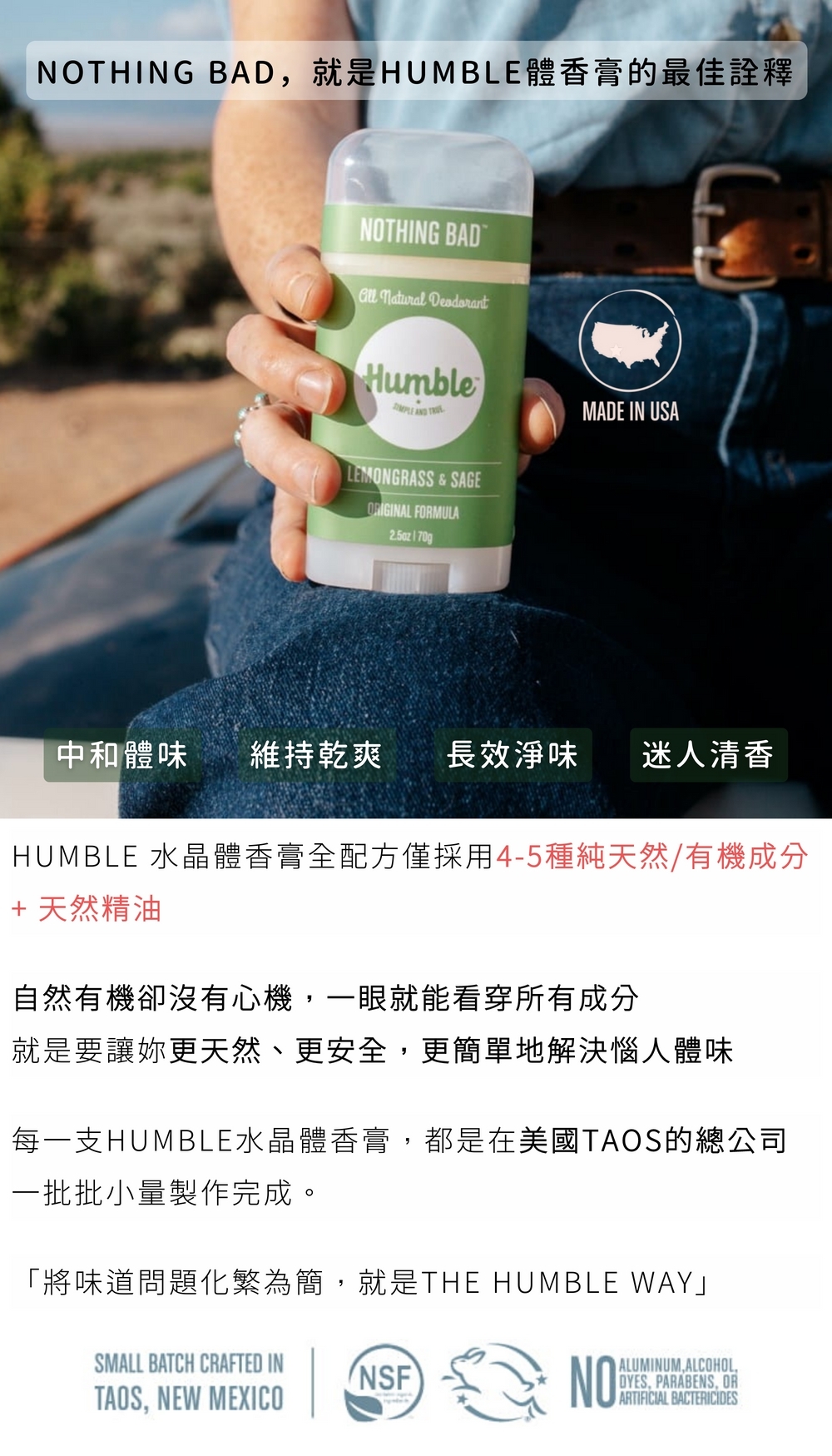 不含化學止汗劑、人工香精