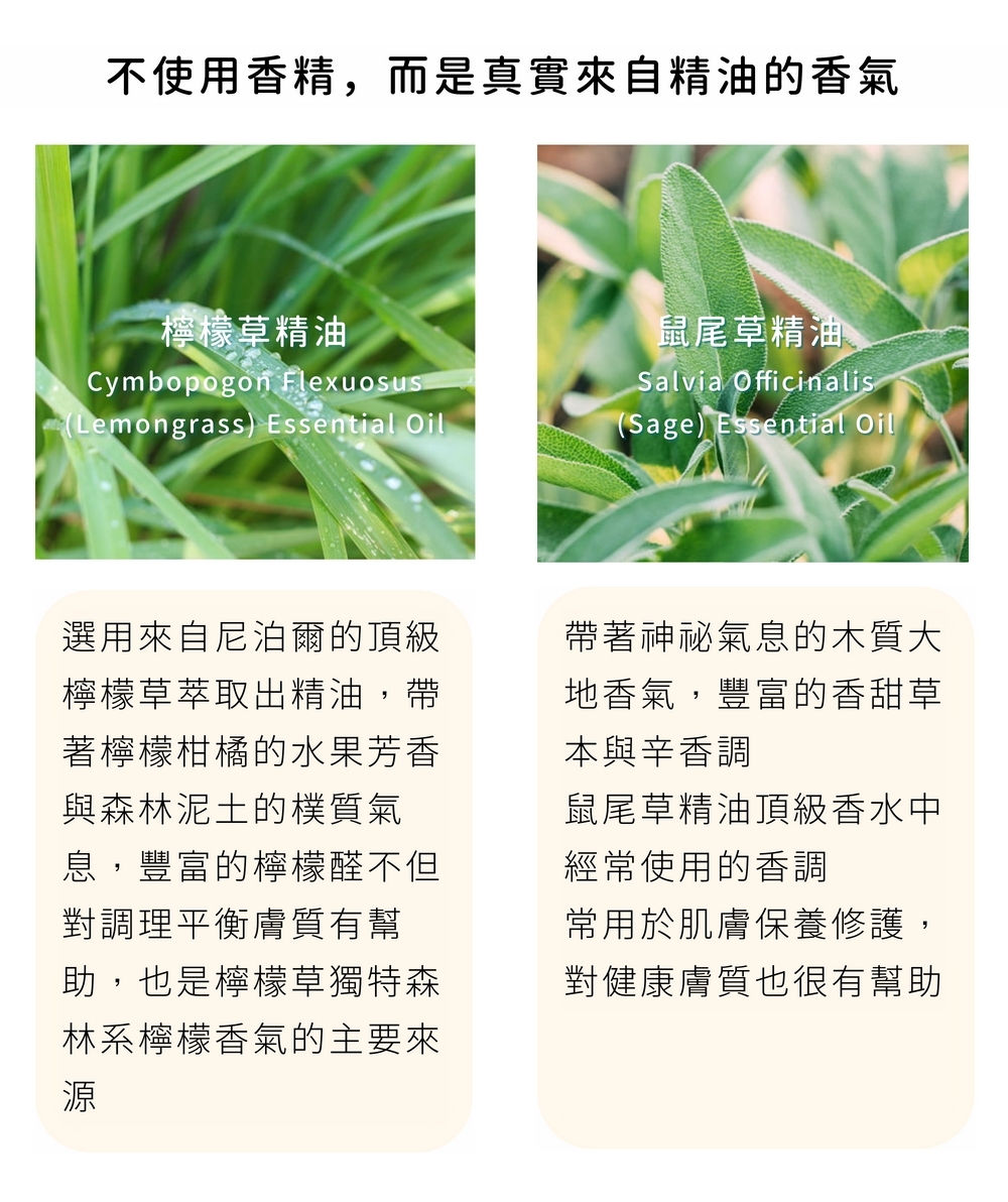 檸檬柑橘的水果芳香 + 森林泥土樸質氣息的檸檬草