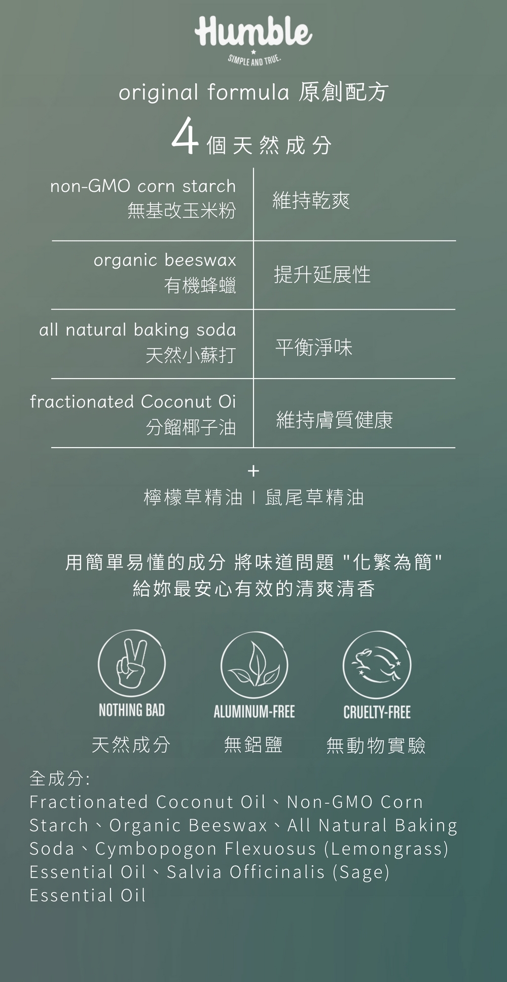 英文品名:Humble Deodorant – Lemongrass Sage