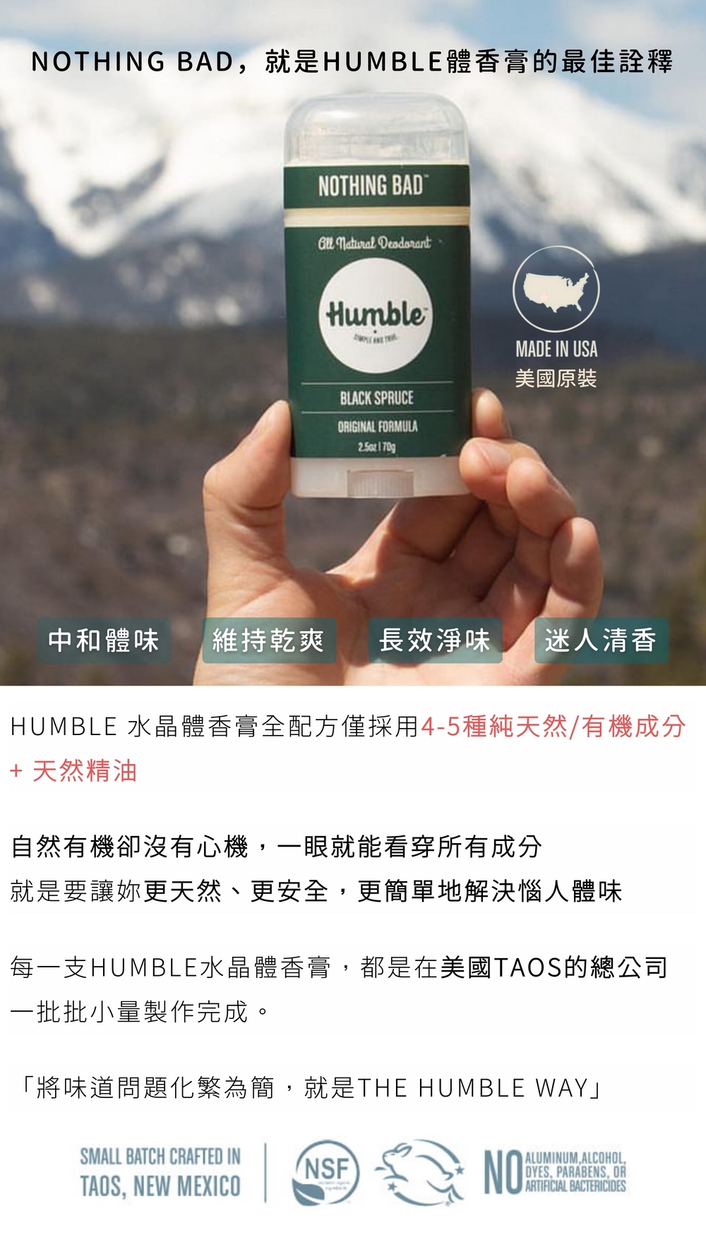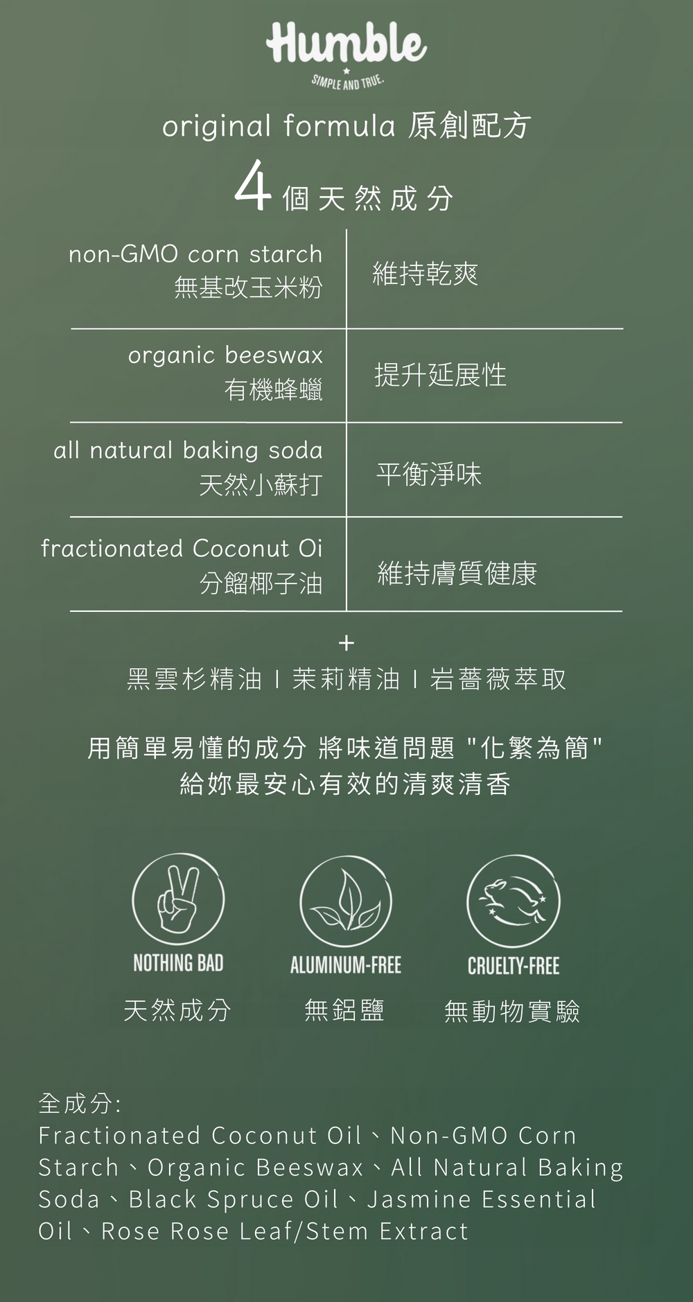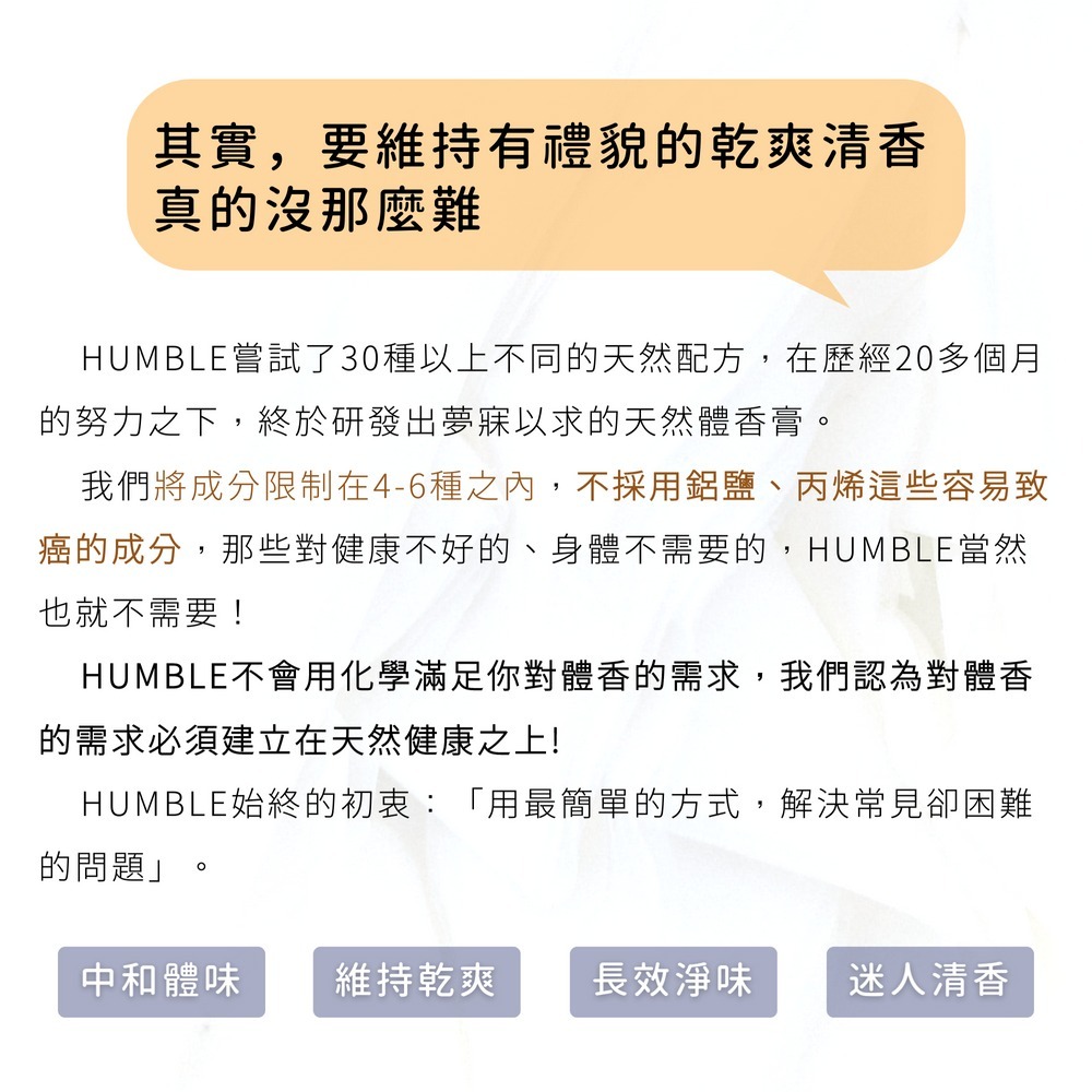 不含化學止汗劑、人工香精