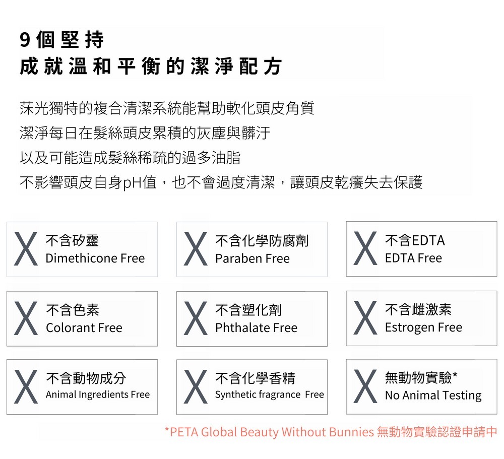 無矽靈、SLS、SLES、paraben化學防腐劑、動物成分